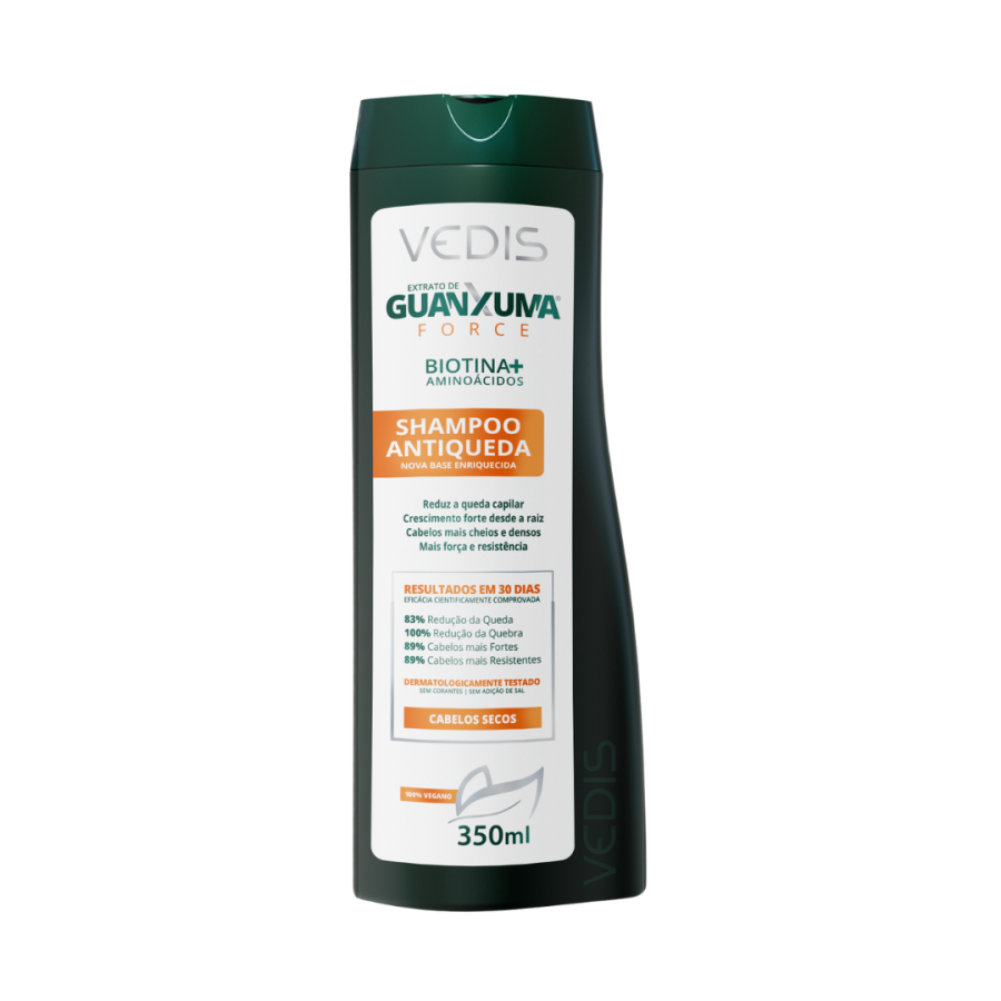 O SHAMPOO GUANXUMA ANTIQUEDA FORCE – CABELOS SECOS passou por testes de laboratório, cientificamente controlados, que comprovam sua eficácia na redução da queda dos cabelos e também sua capacidade em promover o crescimento forte desde a raiz, tornando o cabelo mais cheio e denso, com resultados comprovados a partir de 30 dias de tratamento. O Shampoo Antiqueda age na redução da queda capilar e restaura a força, resistência e densidade dos cabelos, minimizando a quebra dos fios. Seu complexo de ativos antiqueda aumenta a produção de energia no bulbo capilar, auxiliando no crescimento de novos fios. Combina cinco ativos botânicos diferentes: Guanxuma, Capsicum, Jaborandi, Urtiga e Alecrim que promovem uma redução de até 83% da queda capilar. Com destaque para o extrato natural de GUANXUMA que tem propriedades exclusivas para diminuir a queda, aumentar o crescimento e dar volume aos cabelos. Enriquecido com Biotina + Aminoácidos, ativos multifuncionais que revitalizam, fortalecem, regeneram e reestruturam a fibra capilar como um todo devolvendo brilho, elasticidade e maciez ao cabelo com efeito imediato.